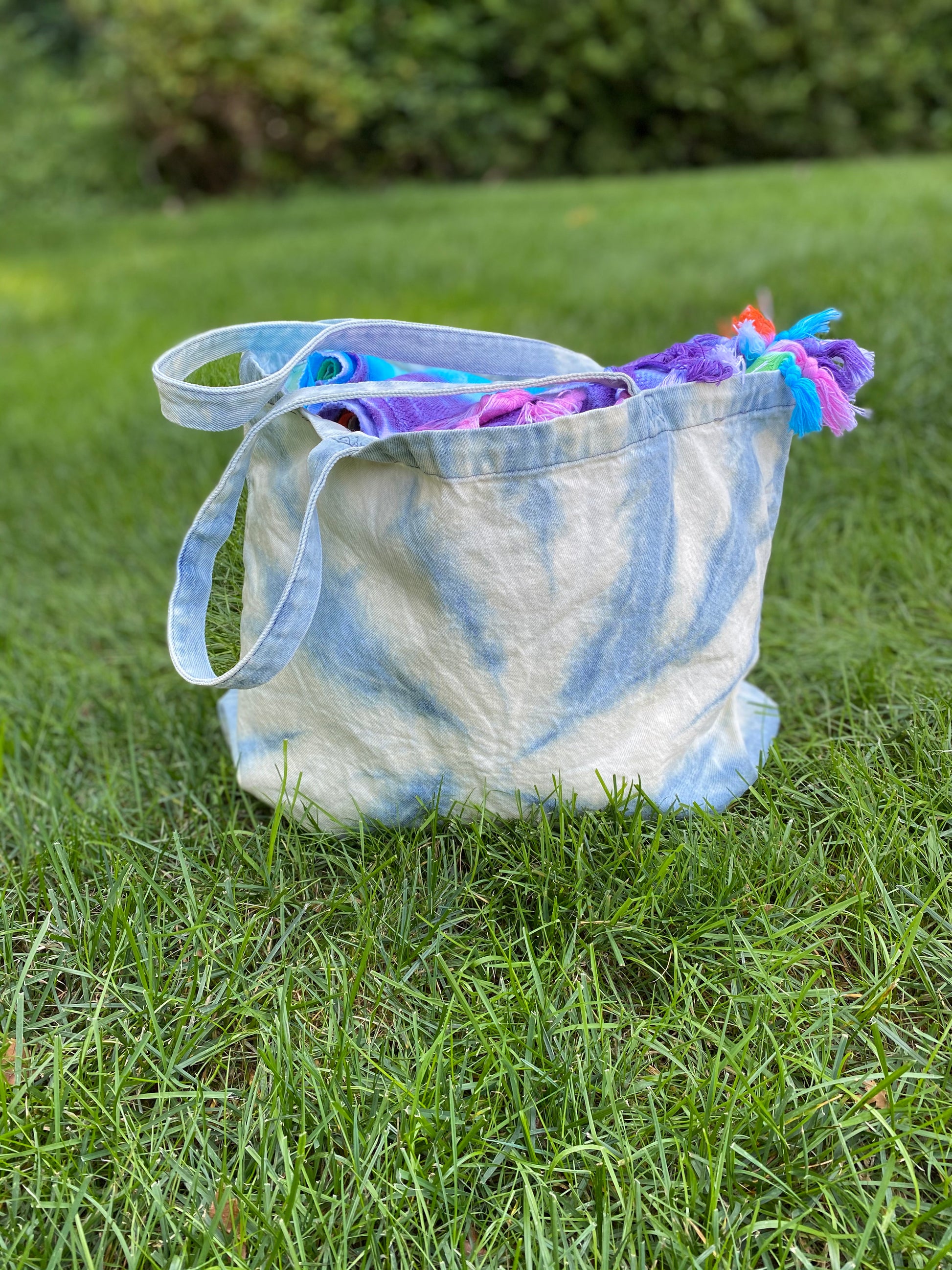 This soft, washed denim tote is perfect for the beach, the grocery store, or just for toting around your kids' crap!